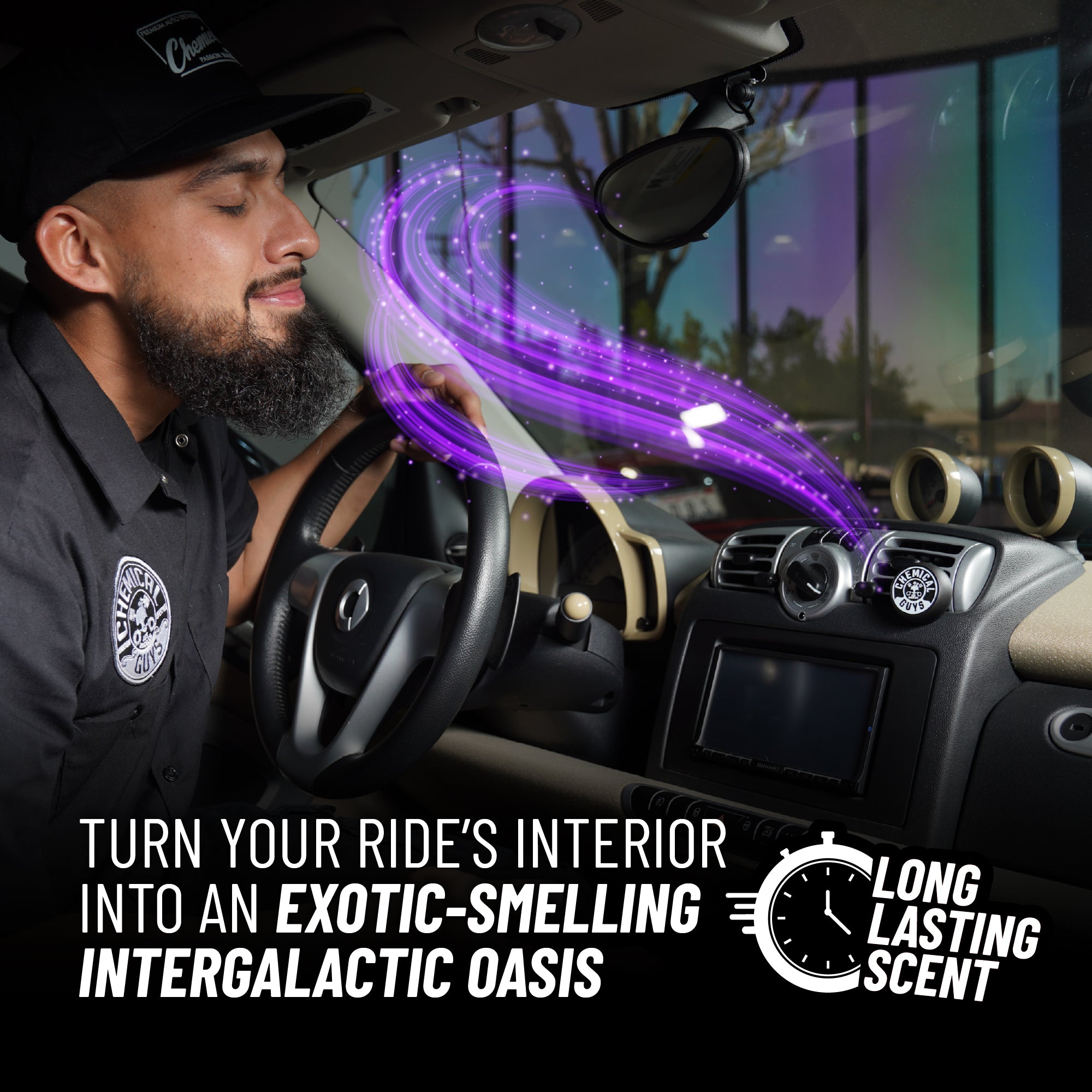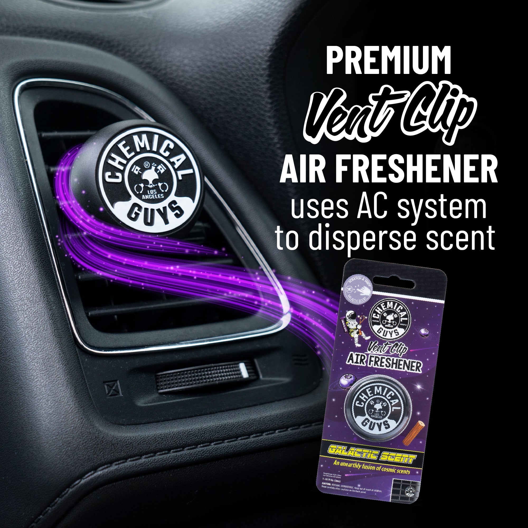 Chemical Guys Galactic Scent Vent Clip Air Freshener’s exhilaratingly crisp. woodsy scent is specially formulated to transport you to an exotic-smelling intergalactic oasis. far away from any bad smells you may encounter in your ride’s interior!?