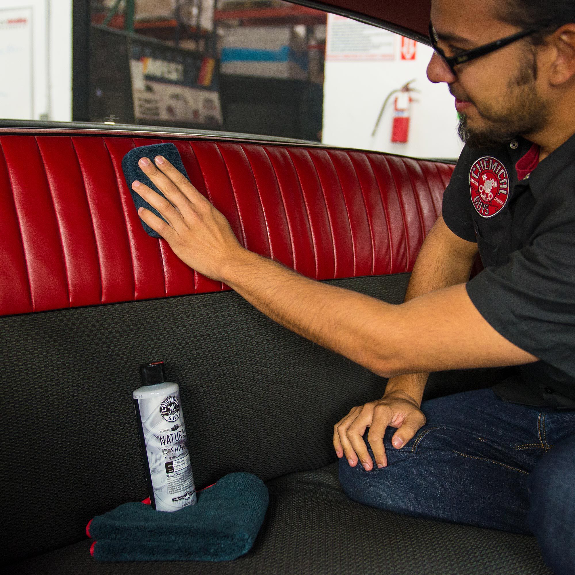Natural Shine is a premium dressing that uses synthetic polymer coating technology to restore a classic. low-sheen. dry-to-the-touch shine to your plastic. rubber. and vinyl surfaces. Use both inside and outside your car.