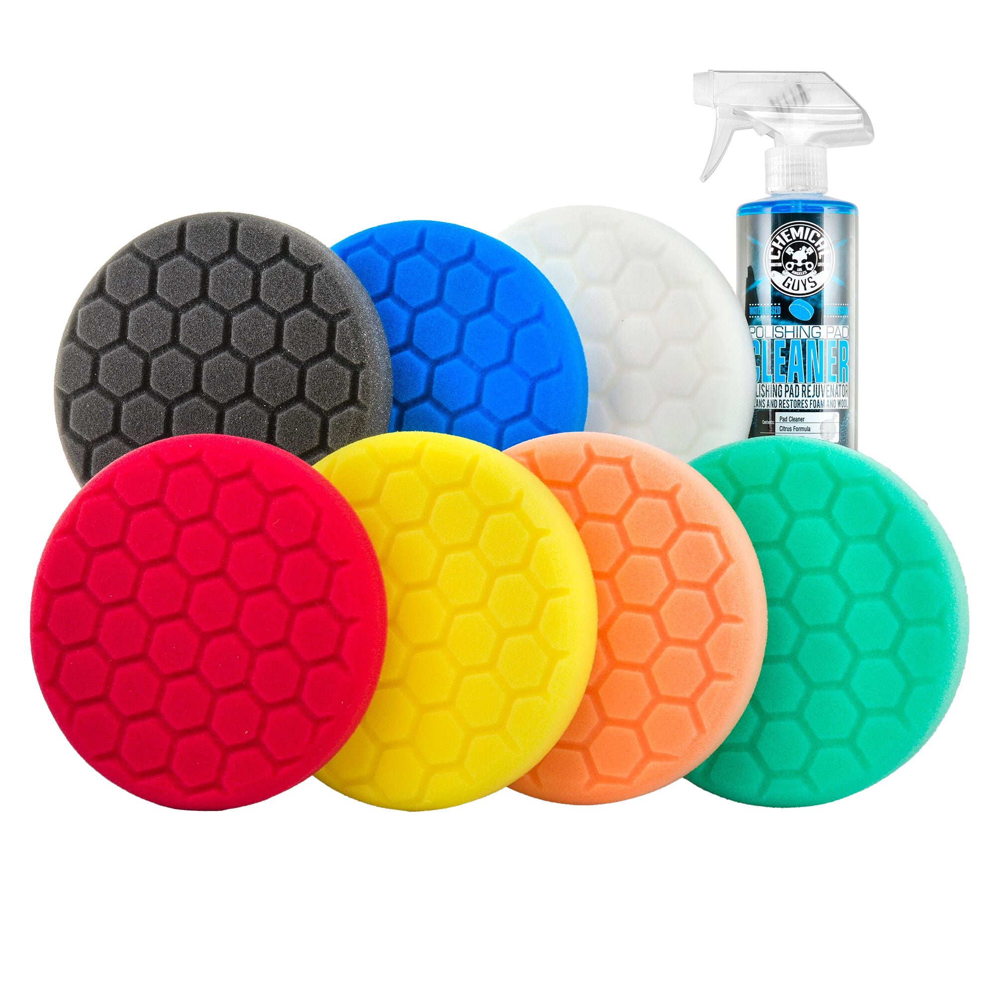 The Wax & Polish 6.5 Buffing Pad Variety Pack w/Polishing Pad Cleaner comes every Hex-Logic pad used for full polishing and waxing detail jobs. Try every fan-favorite cutting. polishing. and finishing pad to create the best result on any paint finish.